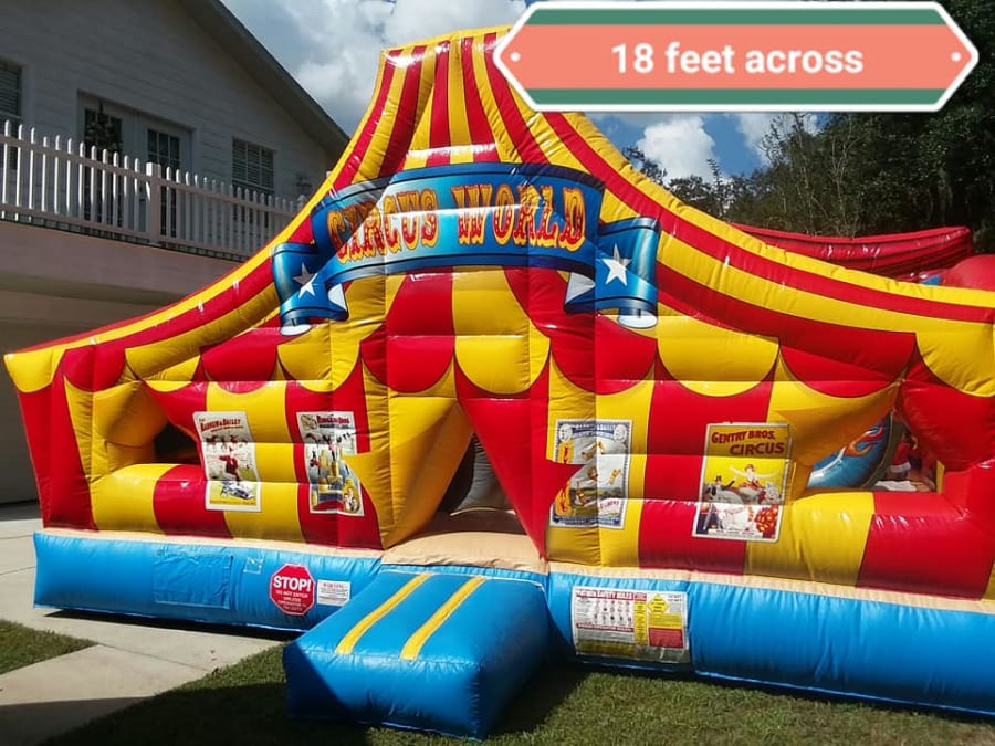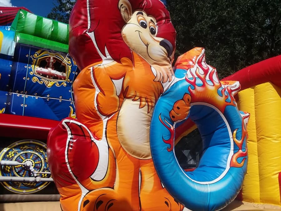 Perfect for backyard rentals or a Circus themed party. Toddlers are jump through hoops in the Lion and crawl through the elephant's tunnel. Large Circus train is a slide inside the obstacle course. This unit is dry only no water. Let your party guests enjoy the eye catching and life like inflatables inside as if they were at the big top Circus.