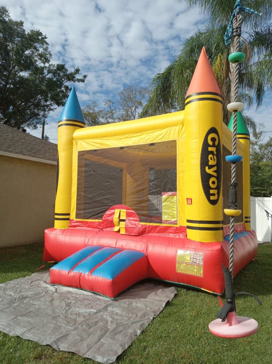 15x15 Basic Crayon Dry Bounce House. Great if you're on a budget. Large jump area and see-through netting allows you to observe children as they jump.