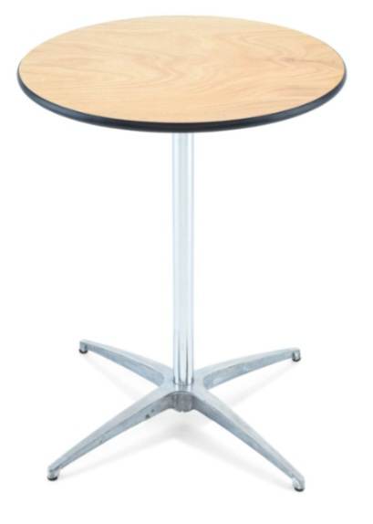 30-inch-high cocktail tables have round tops measures 30 inches round the base top of tables. Table covers are available in many colors. Regular folding chairs can be rented with this tables are used as stand alone.