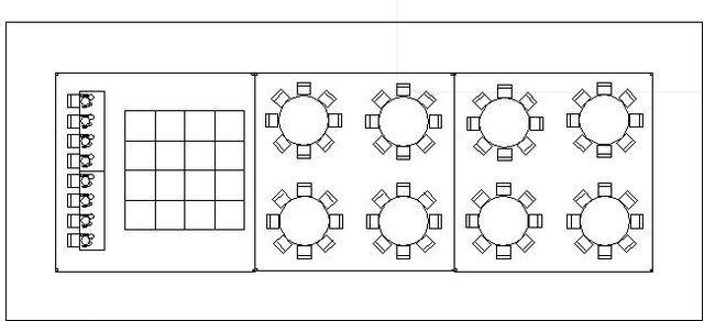 Seating varies by layout and table choice. Configure for rounds, long banquet tables, or theater style. Up to 128 seated guests for receptions and dinners. Use flexible layouts for displays, stages, or buffet lines. 🪑🍽️